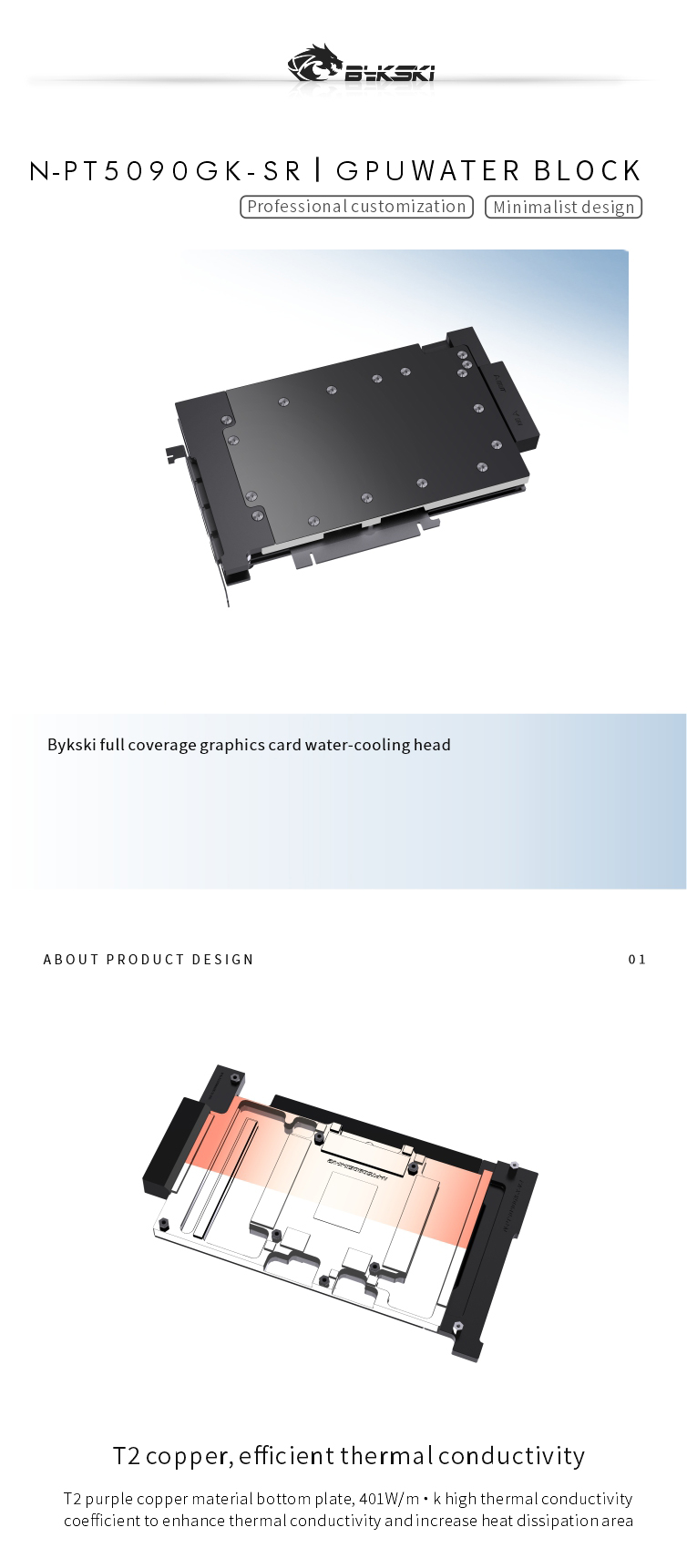 Bykski N-PT5090GK-SR graphics card water-cooling head all metal structure with Pailt RTX5090 from Tongde